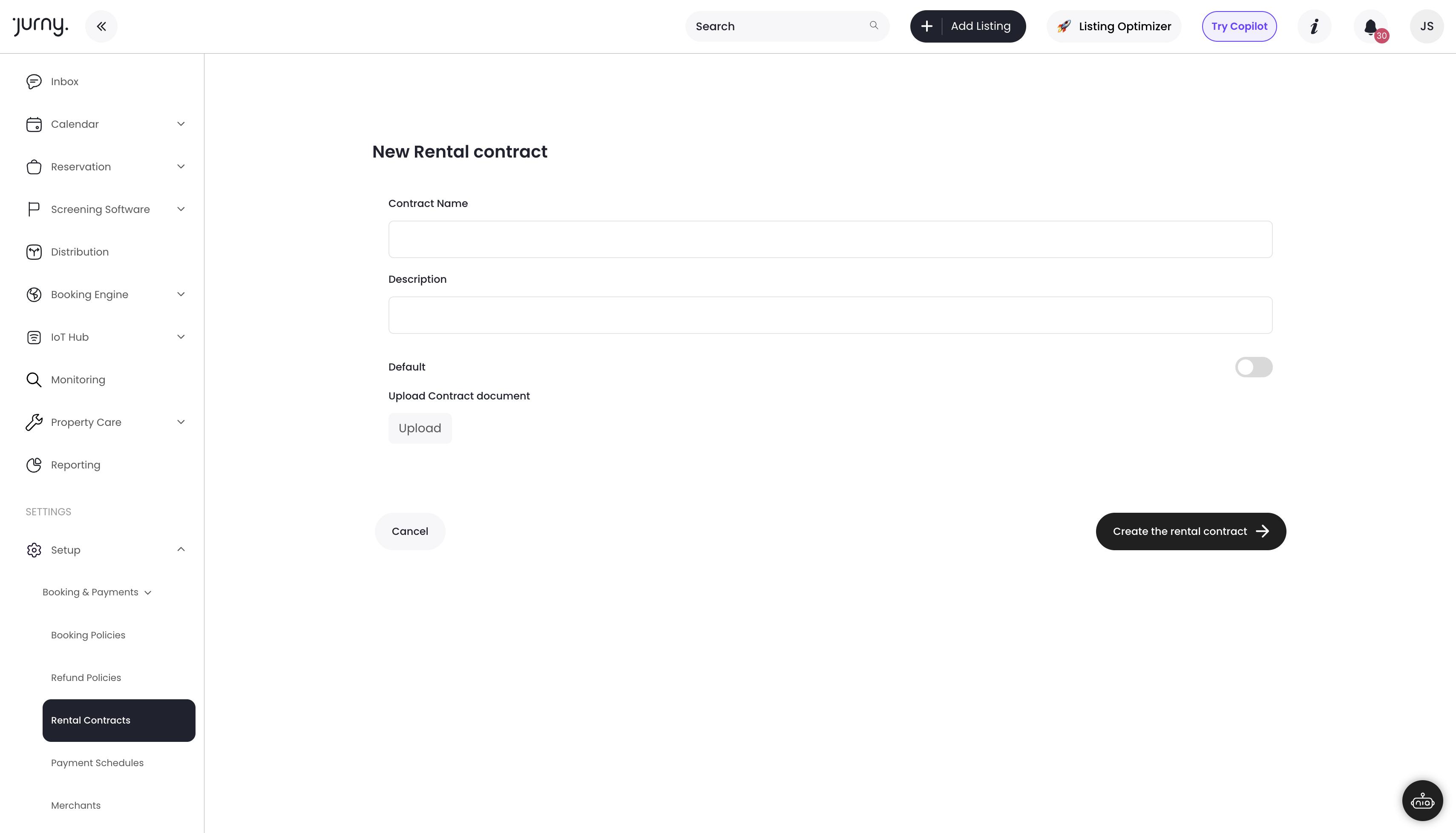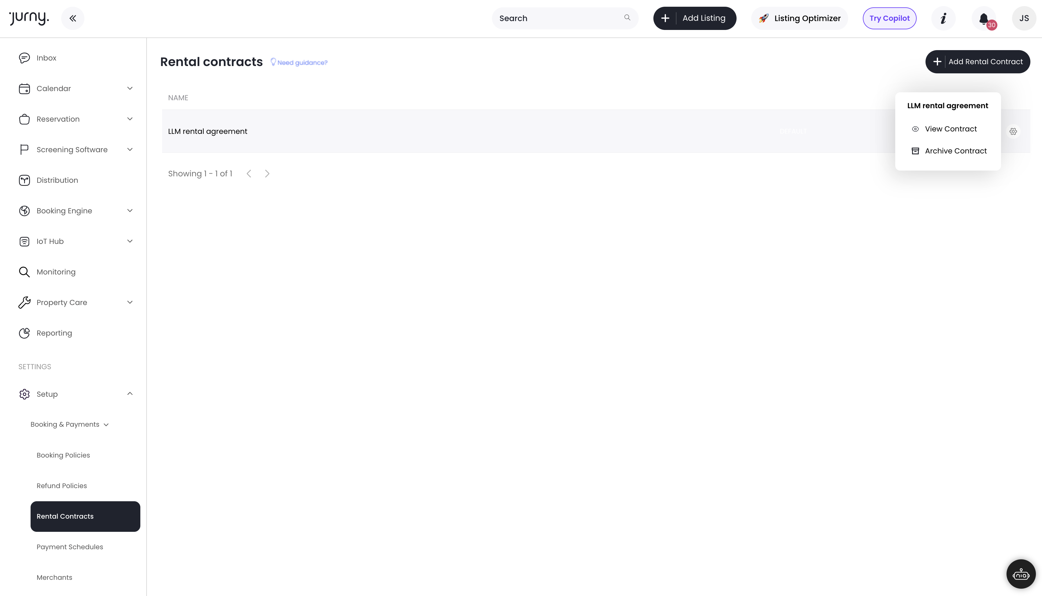 You can add a rental contract from the Setup section of your account. Follow these steps to add your rental contract to Jurny:
