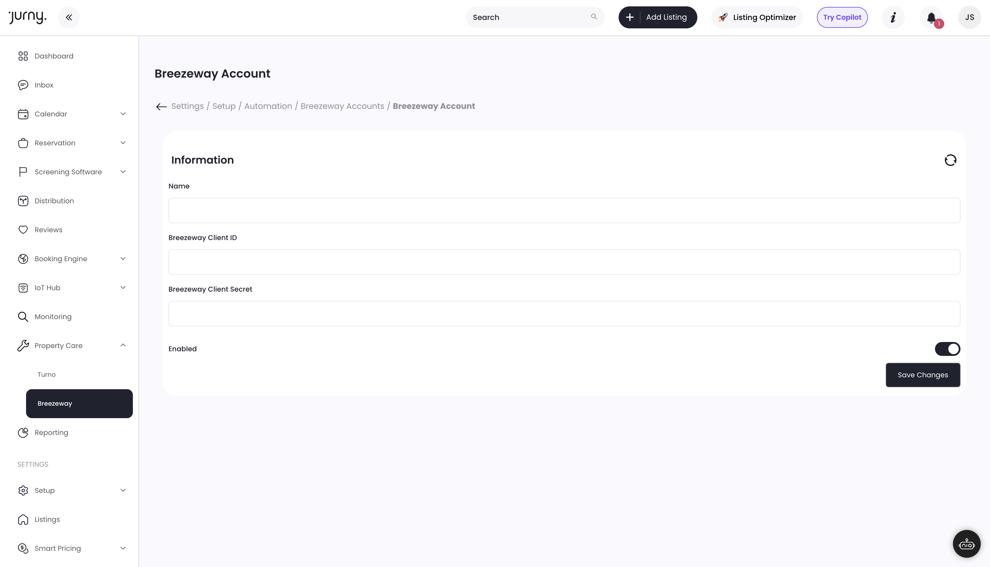 Breezeway is not included with Jurny. You must manage billing and setup directly with Breezeway.