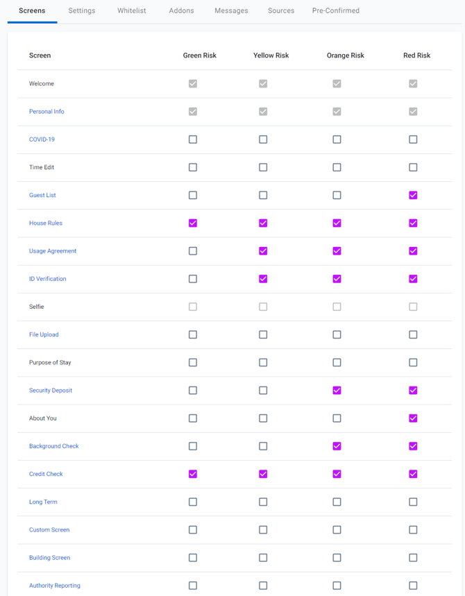 Enabling ID Verification will trigger automatic selfie capture. And by clicking each one of the highlighted screens (Personal info, COVID-19, Guest List, etc.), you will be able to customize each one of them.