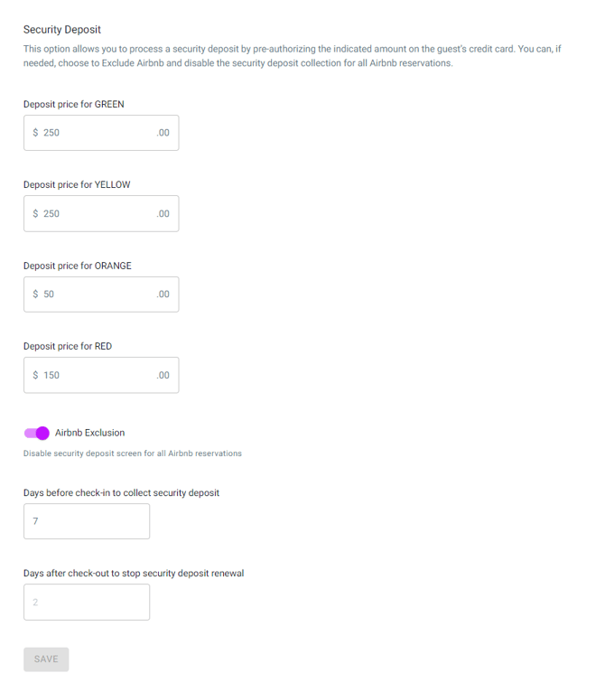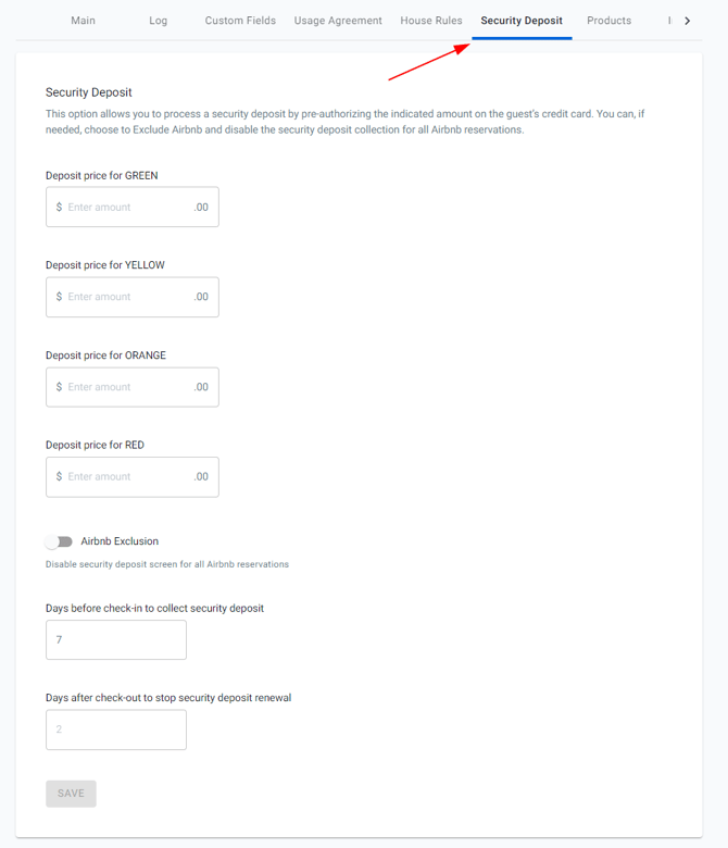 Add the Security Deposit based on each color, set up your rules, and this will override the general settings that you established previously!